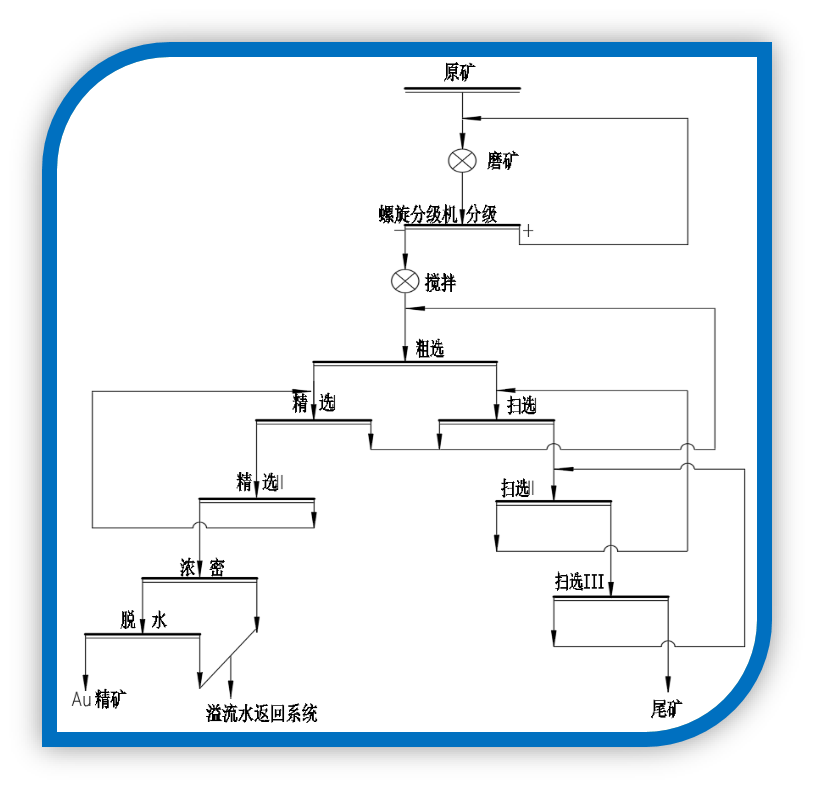 通过粗选、扫选,一至三次精选就可以获得较好的浮选指标;