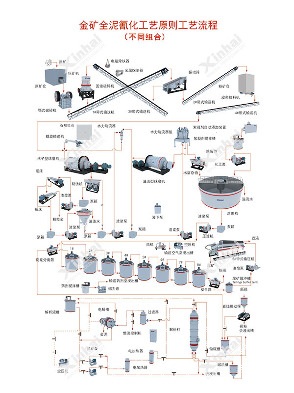 金矿氰化工艺主要包括锌置换工艺、炭浆工艺、炭浸工艺、树脂矿浆工艺、堆浸工艺、氰化助浸工艺。